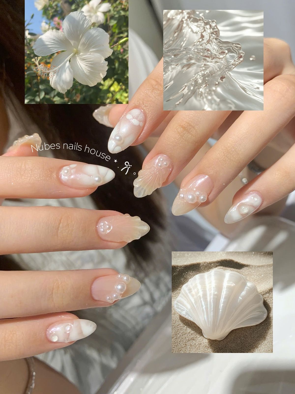 • Mẫu nailbox là sự kết hợp tinh tế giữa gam màu biển, chi tiết ngọc trai và họa tiết vỏ sò, tạo nên vẻ đẹp nữ tính, tươi mới – hoàn hảo cho những cô gái yêu phong cách mùa hè và biển cả.